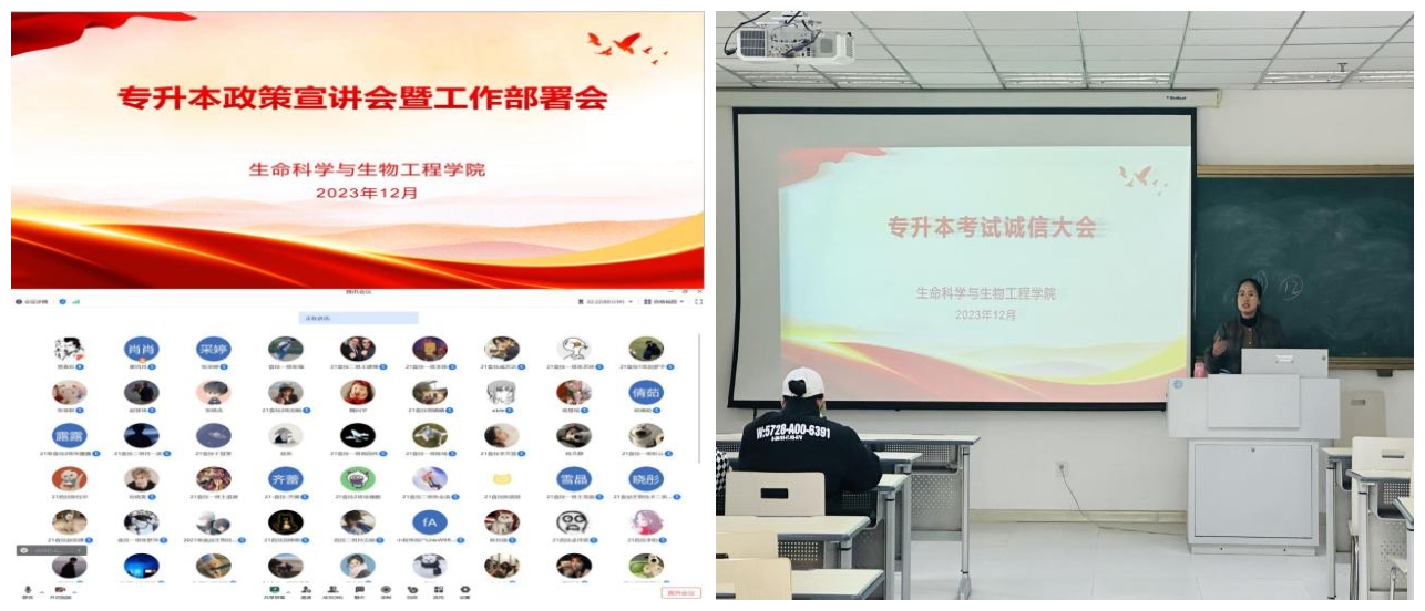 12月21日,皇冠welcome登录官网通过线上线下相结合的方式召开了专升本政策宣讲会暨工作部署会。辅导员贾春旺、翟肖肖及2024届专科毕业生参加会议。