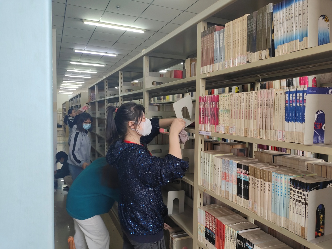 全体成员在校图书馆门前集合完毕后,根据图书馆老师的安排进行了合理分工,并开展了以下两个方面工作:一是打扫图书馆卫生,清点书籍并将其搬运到相应的图书阅览室,二是将图书馆个别阅览室的书籍进行换架与整理,并擦拭书架上的灰尘。志愿者们认真细致地完成各项任务后在图书馆前进行了合影留念。
