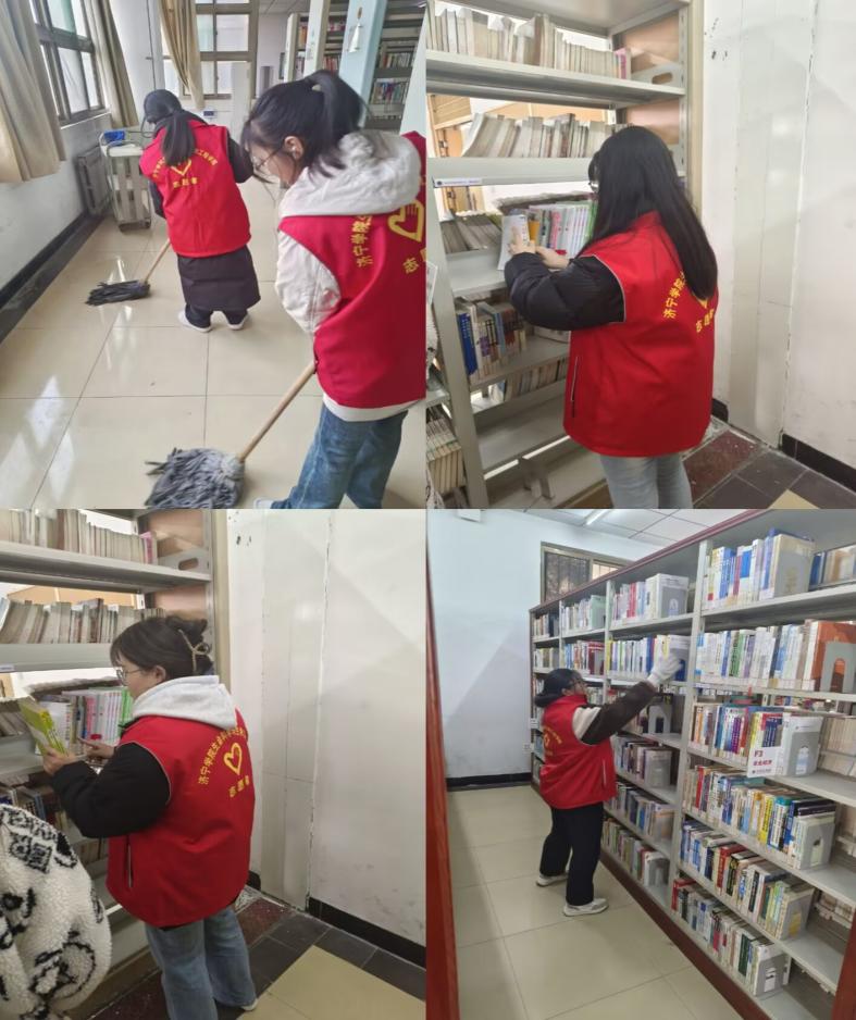 3月7日,皇冠welcome登录官网组织志愿者到学校图书馆开展志愿服务活动。志愿者在图书馆南门口集合并分配具体工作后,分别到阅读区进行擦拭桌椅、扫地拖地等卫生打扫工作;到图书馆书架区域开展图书归架与排列等书籍整理活动。