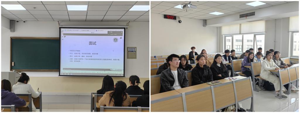 于芸芝从面试环节中的自我介绍进行了经验分享,并提醒学弟学妹们在面试时要结合自己的英语四六级成绩、参加过的科研项目充分展示自我的英语水平、科研能力、获得的重要奖项及荣誉。